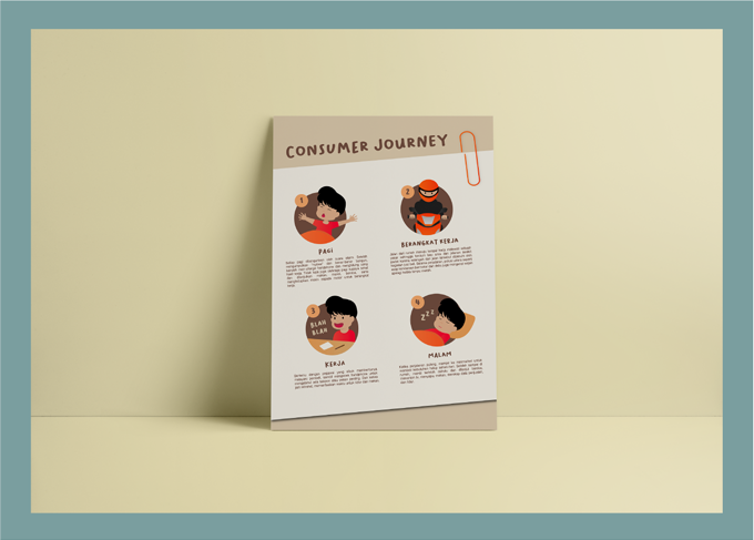 The infographic is about my father's consumer journey regarding Pond's Men product. The elements used are paper and clips that indicate my father work is surrounded by pile of papers. While the colors used are warm colors because he is a warm person.